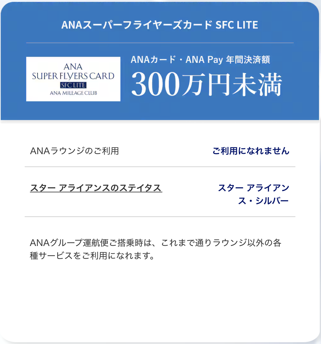ラウンジ利用無し更にスタアラシルバーに格下げ、とはいえANAグループ便利用なら色んなサービスが継続して利用できます。