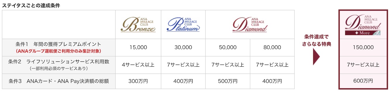 ANAカード等での年間決済額が一番ハードル高そうではありますが・・・