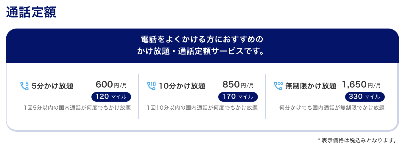 2、定額通話料金(11円(税込)/30秒分は適用外)